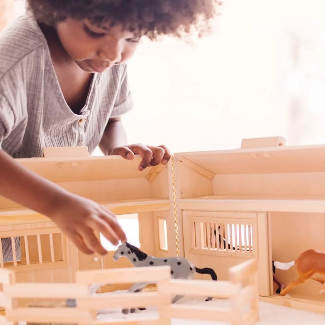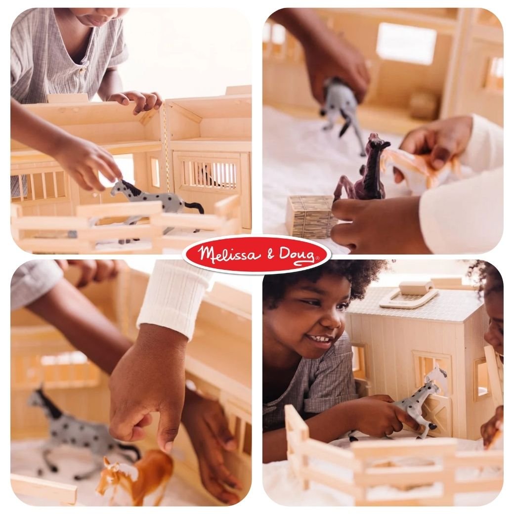 บ้านของม้าน้อยสุดน่ารัก! เปิดคอก เล่นสนุก แล้วพกไปผจญภัยได้ทุกที่ชวนเด็ก ๆ เปิดโลกการเล่นบทบาทสมมติในฟาร์มม้า เมื่อเปิดโรงม้า เด็ก ๆ จะได้ดูแลม้าน้อยทั้ง 4 ตัว ให้อาหาร พาเข้าคอก หรือปล่อยวิ่งในคอกสนาม
