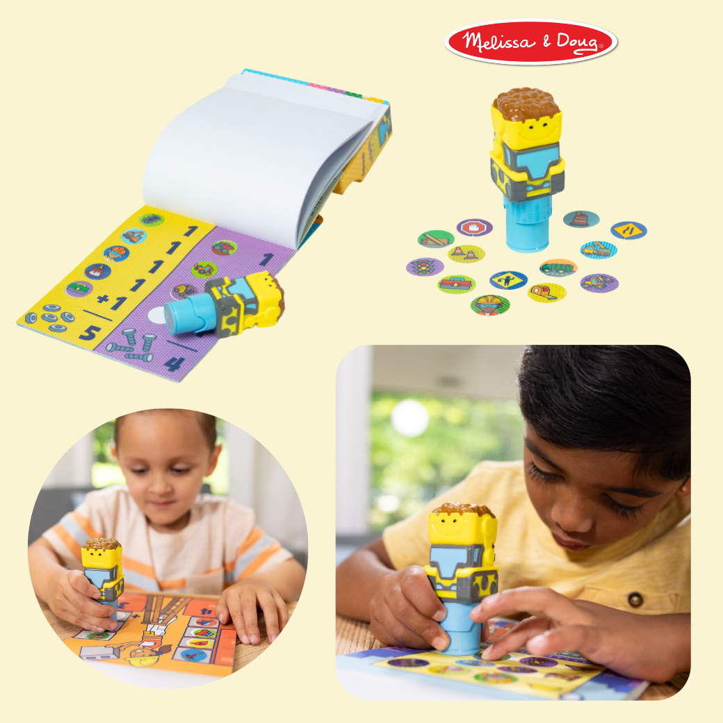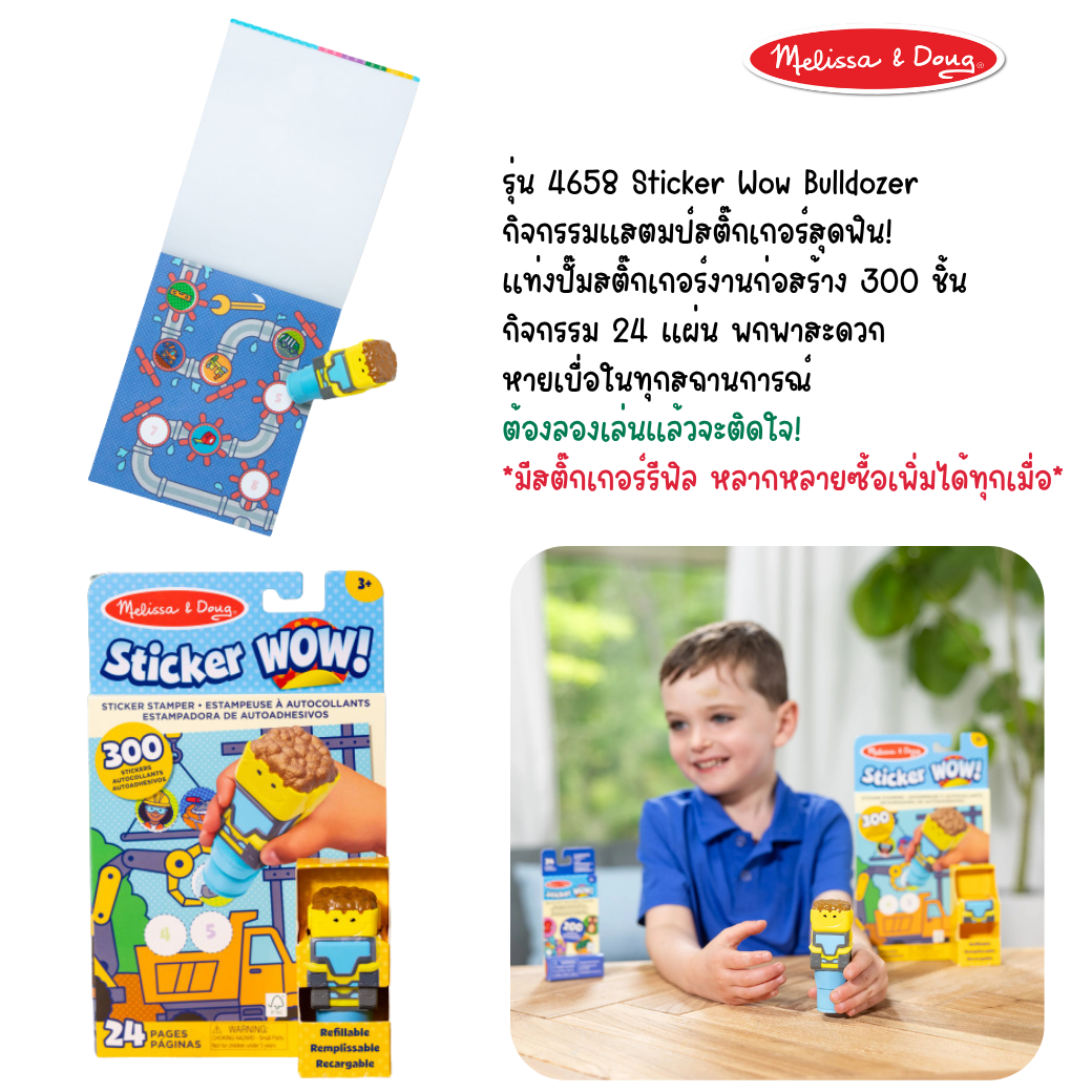- Melissa & Doug Sticker WOW!™ is a whole new way to play with stickers – use the cute, collectible character to stamp construction-themed stickers on the 24-page Construction activity pad and on other creative art projects