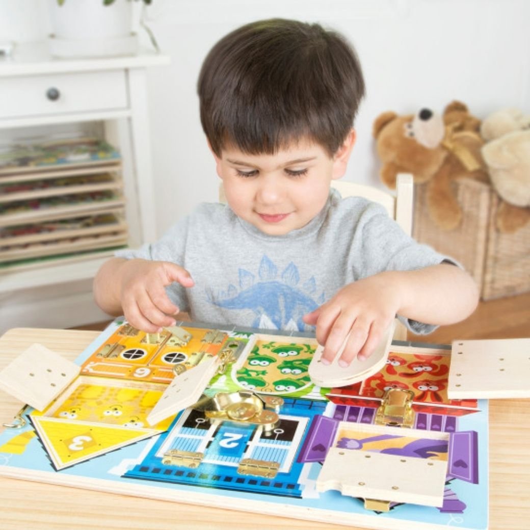 ชุดเล่นเปิดปิดล๊อคสารพัดแบบ สนุกมากสำหรับเด็กๆที่เป็นนักช่างสำรวจภายใต้แต่ละประตู
