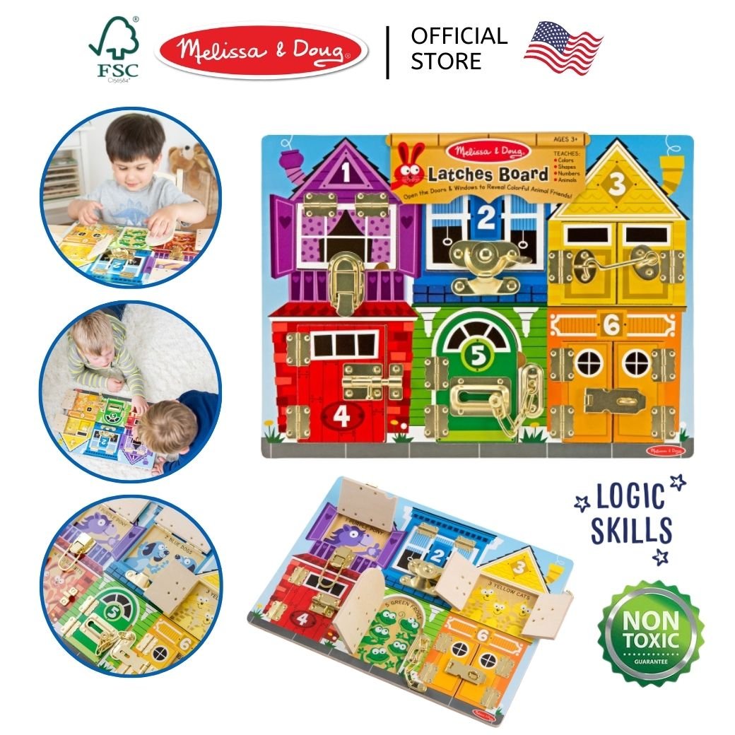 Melissa & Doug Latches Board รุ่น 3785 บอร์ดเล่นเปิดปิดกลอนและล๊อค ของเล่นฝึกเปิดกลอนประตูชนิดต่างๆ